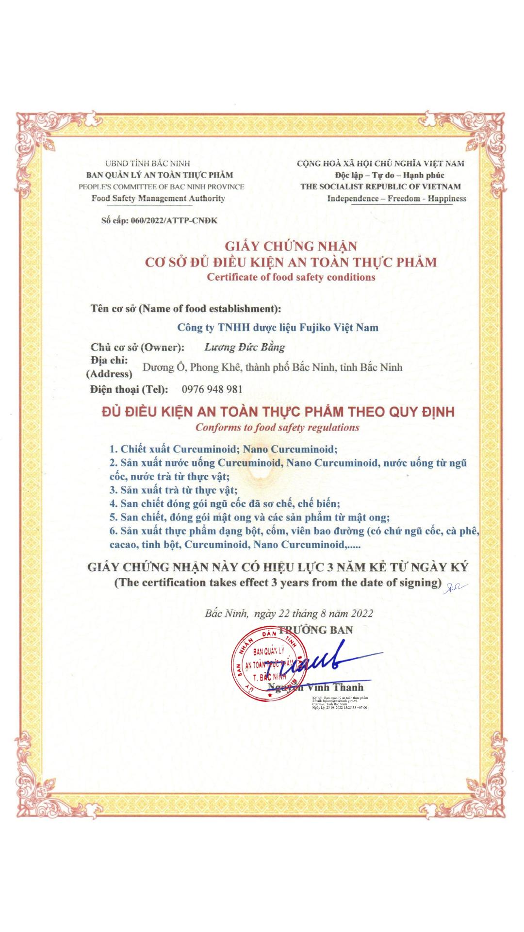 👉 Hoàn toàn an toàn. Sản phẩm được sản xuất từ nghệ vàng Hưng Yên nguyên chất, ứng dụng công nghệ Nano tiên tiến để chiết tách Curcumin thành hạt siêu nhỏ, dễ hấp thụ. Quy trình sản xuất tuân thủ nghiêm ngặt tiêu chuẩn an toàn thực phẩm, không sử dụng chất bảo quản độc hại, không gây tác dụng phụ. Đặc biệt, sản phẩm đã đạt chứng nhận FDA của Hoa Kỳ, đảm bảo đáp ứng các tiêu chuẩn khắt khe nhất về chất lượng và an toàn sức khỏe.